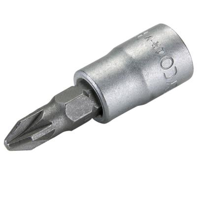 - Llave de vaso diseñada para atornillado con carraca de cuadradillo de 1/4" y punta Pozidrive embutida, ideal para tareas que requieren gran precisión y fuerza de apriete.