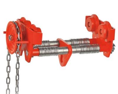 Carro portapoleas de doble eje con sistema de traslación manual por cadena.
