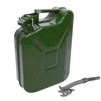 Bidón metálico fabricado en chapa de Acero de 0,8 mm. de espesor. Tipo Jerrycan. Chapa pintada por el exterior y el interior. Homologado por la norma UN de transporte de hidrocarburos. El asa de 3 rejillas puede usarse para ser llevada por 2 personas.